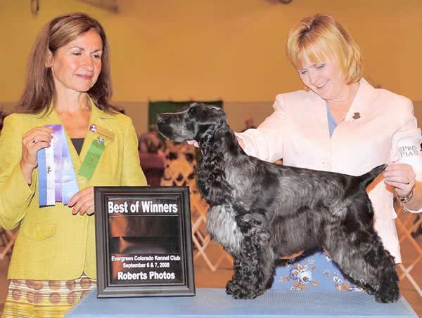 Our daughter-in-law Genelle (wife of Bonny a.k.a Jake) with her Champion Dog ' Button'. She's the redhead on the right holding the dog.